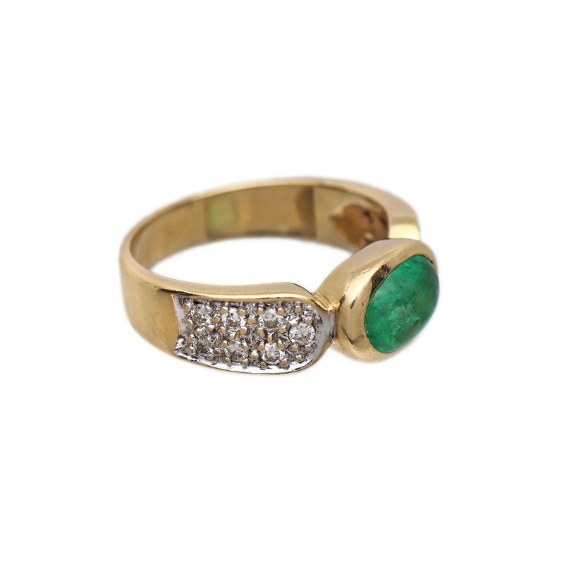 Zlatý prsten s přírodním smaragdem a brilianty