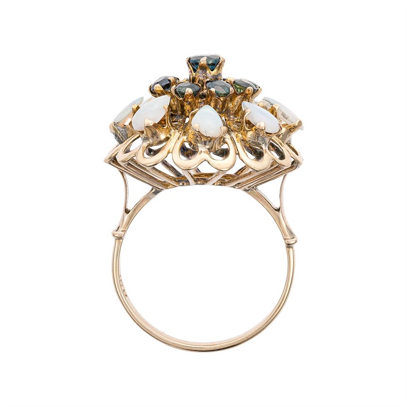 Zlatý prsten s přírodními safíry 1,80 ct a přírodními opály