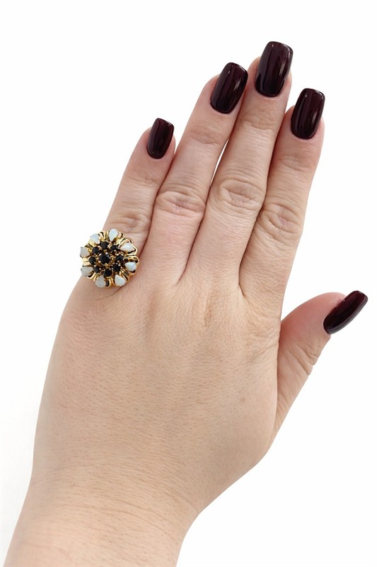 č. 182 135 Zlatý prsten s přírodními safíry 1,80 ct a přírodními opály
