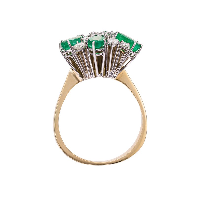 Zlatý prsten s přírodními smaragdy a přírodními diamanty