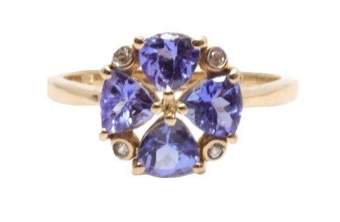 č. 179 993 Zlatý prsten s tanzanity a topazy