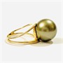 Výrazný, moderně pojatý prsten osazený velkou imitací thajské perly, díky rozestupující se dvojité šíně působí šperk lehce a vzdušně. Kvalitní německá zlatnická práce z počátku 21. století. Zhotoveno ze žlutého 14 karátového zlata, tj. o ryzosti 585/1000; nově opatřeno puncem Z-58 (labuť 4) a ryzostní číslo zevnitř šíny. Hmotnost 7,26 g, velikost 55, průměr perly 14 mm. Ve velmi zachovalém stavu, odborně vyčištěno a vyleštěno zlatníkem.