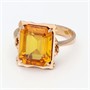 Zlatý prsten z růžového zlata se syntetickým safírem o celkové hmotnosti cca 6.82 ct, velikost 12 x 9.8 mm. Celková Au 5,06 g/585/1000, punc. Západní Evropa, poslední čtvrtina 20. století, velikost prstenu 53