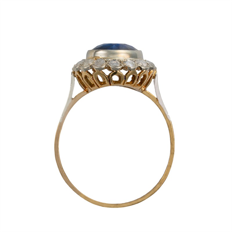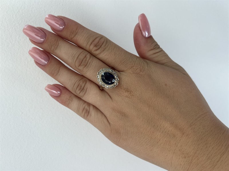 Zlatý prsten se safírem a diamanty