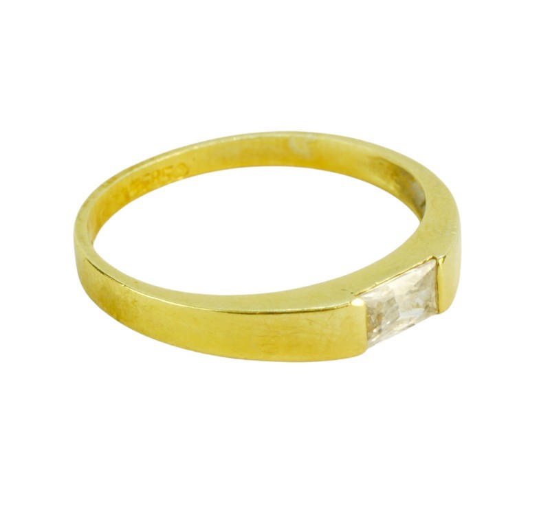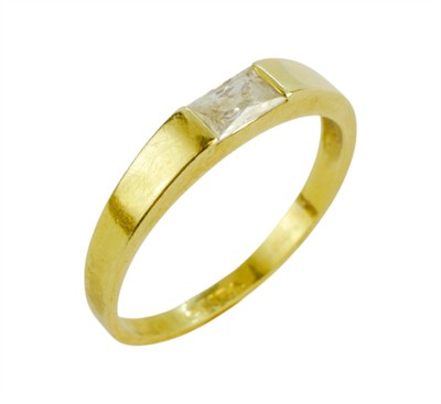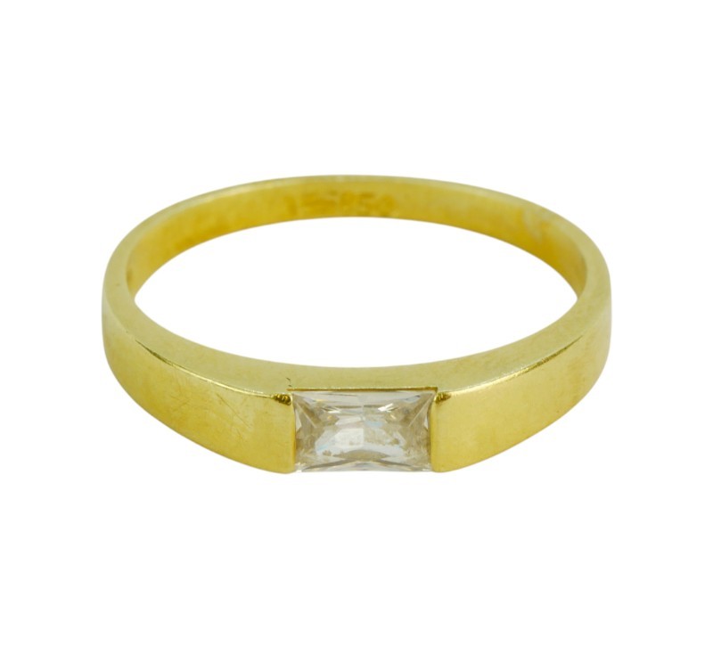 Prsten ze žlutého zlata ryzosti 585/1000 se zirkonem. Celková hmotnost prstenu je 1,95 g. Velikost 56.