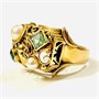 Zlatý starožitný autorský prsten s turmalíny a perlami