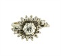 Apartní starožitný prsten koktejlového typu s vějířově pojatou hlavicí, osazeno přírodními diamanty, centrální kulatého starého briliantového brusu o váze 0,55 ct, čistota VVS2, barva J-K, dále doplněno kulatými jednoduchými brusy (achtkant) o celkové váze 0,29 ct (0,016 ct - 18 ks), jejichž kvalita je velmi dobrá, celková hmotnost kamenů 0,94 ct. Precizně fasováno krapnami v bohatě žebrované hlavici. Západoevropská či severoamerická klenotnická práce z 50. let 20. století. Zhotoveno z bílého 13,4 karátového zlata, tj. o ryzosti 560/1000; vyhotoveno osvědčení puncovního úřadu, stornované ryzostní číslo zevnitř šíny. Hmotnost 3,23 g, velikost 54, šířka hlavice 11 mm. V zachovalém stavu, odborně vyčištěno a vyleštěno zlatníkem. Součástí odborný posudek.