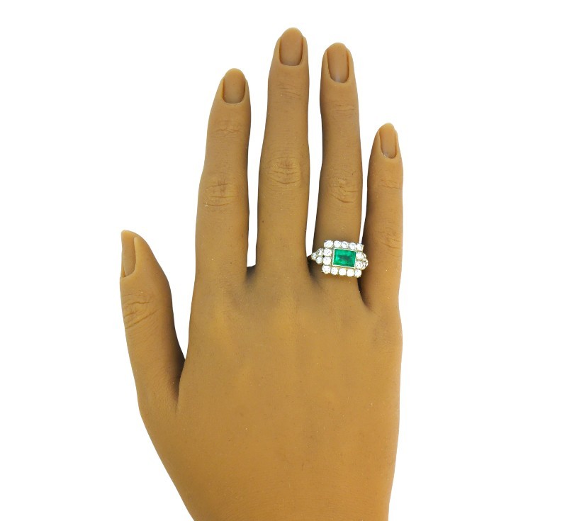 č. 180 518 Zlatý starožitný prsten se smaragdem a diamanty