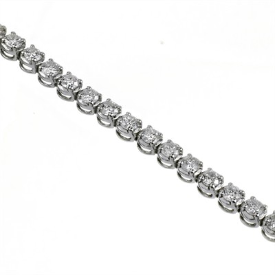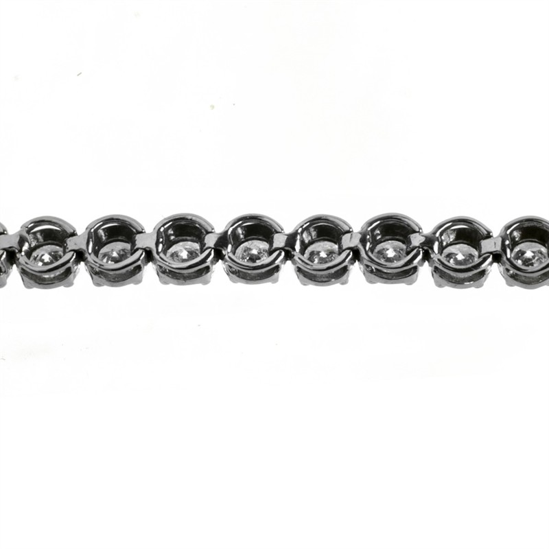 Tenisový náramek z bílého zlata s brilianty o celkové hmotnosti 4 ct (čistota Si3, barva G). Au 585/1000, hmotnost 8,36g. Čechy, 2. polovina 20. století. Délka 17 cm, šířka 0,3cm.