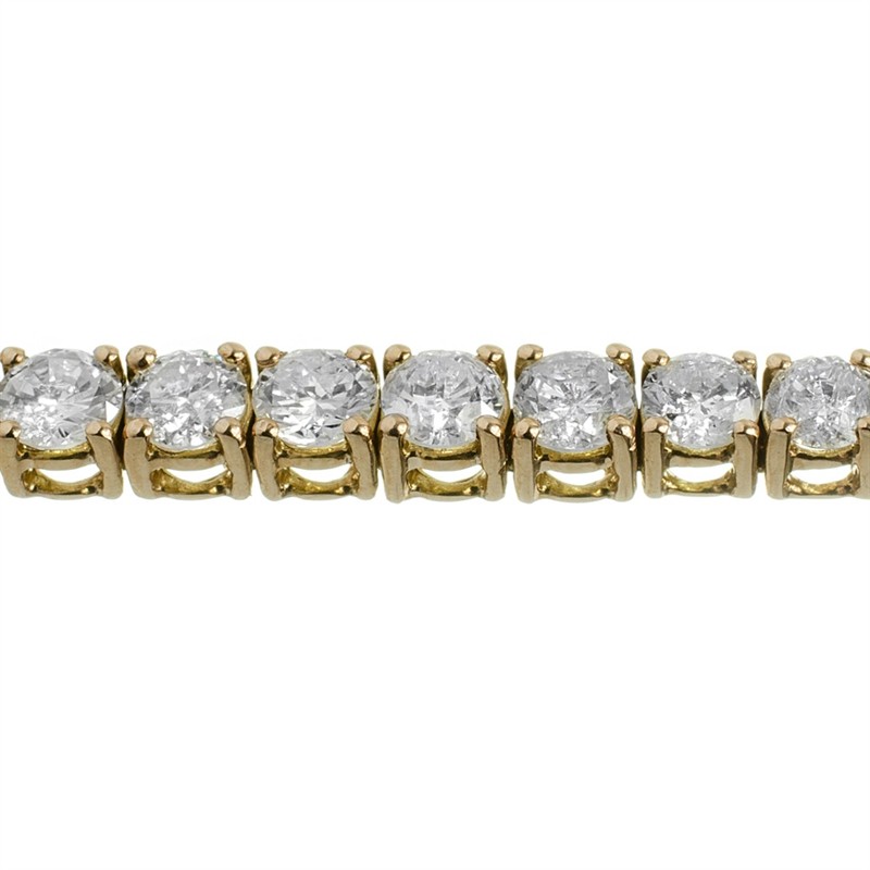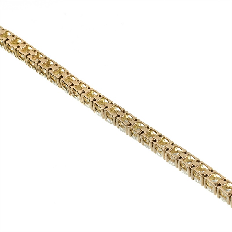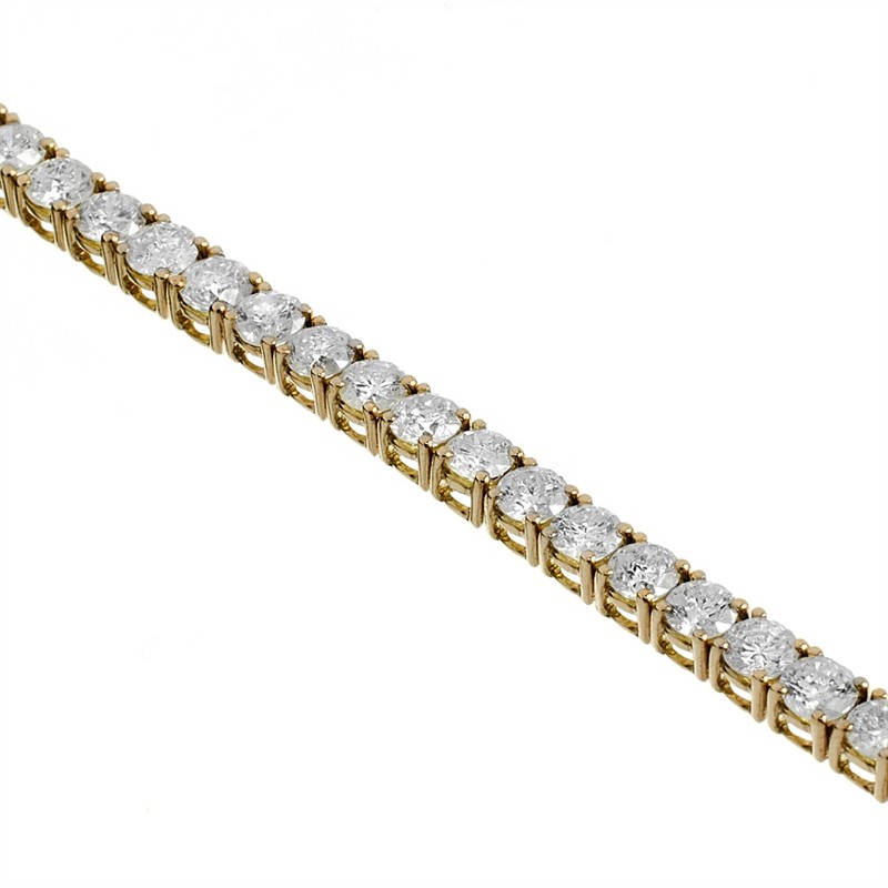 Tenisový náramek ze žlutého zlata s brilianty o celkové hmotnosti 5 ct (čistota Si3, barva G). Au 750/1000, hmotnost 13,20g. Čechy, 2. polovina 20. století. Délka: 18 cm, šířka: 0,3 cm.